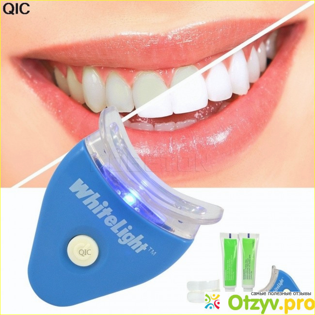 В набор входит лампа-капа, которая можно подключить к сети через адаптер например к своему смартфону. Таким образом вы даже вдали от дома в пути можете отбеливать зубы.