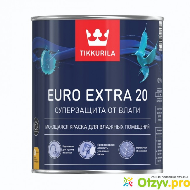 Делают ее в Финляндии, у нее очень большое количество различных цветовых оттенков. Поверхность, окрашенная этой краской, очень прекрасно и легко моется, текстура у нее такая, что можно на окрашенной поверхности производить записи мелками или карандашиками и нет никаких следов, надписи прекрасно смываются. В составе этого продукта присутствуют противоплесневые составляющие, это позволяет ее использовать в местах с повышенной влажностью таких как ванная комната и кухня, а также в открытых помещениях. Можно также выделить ею отдельное место в комнате. Она прекрасно покрывает практически все поверхности, даже пористые. Поверхность после окраски ровная и износоустойчивая. На восемь квадратных метров расходуется один литр краски. Первый слой сохнет шесть часов, а второй полностью высыхает через неделю.
