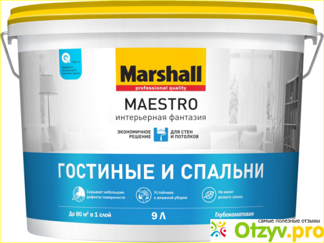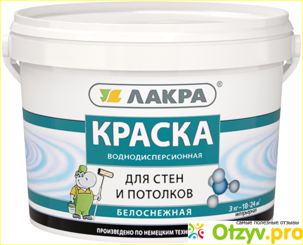 Красят ею стены и потолки, водоэмульсионная, матовая. хорошо моется без специальных средств для мытья. краска относится к декоративным и используется внутри помещения для отделки. Ее легко наносить на обрабатываемую поверхность. она не разбрызгивается и не создает потеки по поверхности. У нее нет сильного запаха. Краска быстро сохнет. Расходуется в количестве одного литра для шести квадратных метров.