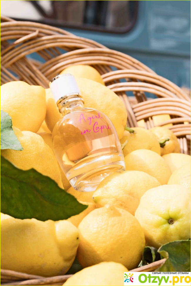 Аромат A Girl In Capri (переводится как Девушка с острова Капри) принадлежит к группе цитрусовых ароматов с нотами цветов и мускуса. Это самое удачное направление для летних парфюмов. Пирамидка аромата проста, солирующими нотами являются цитрусы - лимон и бергамот. Причем, лимон ранних сортов, он довольно кислый и терпкий. Это придает аромату дополнительной свежести.