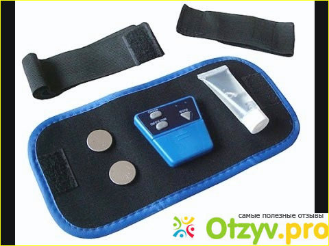 Уложен данный пояс-миостимулятор в компактную коробочку, куда помимо него еще умещаются 2 батарейки CR 2032, электропроводящий гель, а также два элластичных пояса. При использовании данного прибора можно выбрать десять уровней различной интенсивности, и шесть разных программ специальных упражнений.
