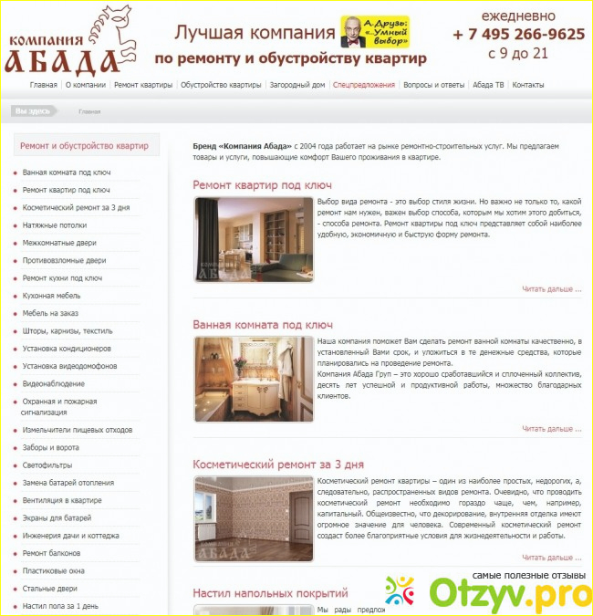 Поскольку сама я ремонт сделать не смогла бы, потому что мне нужен был не только косметический ремонт, то решила поискать в интернете компанию, которая занимается ремонтом. Таким образом я попала на сайт компании Абада.