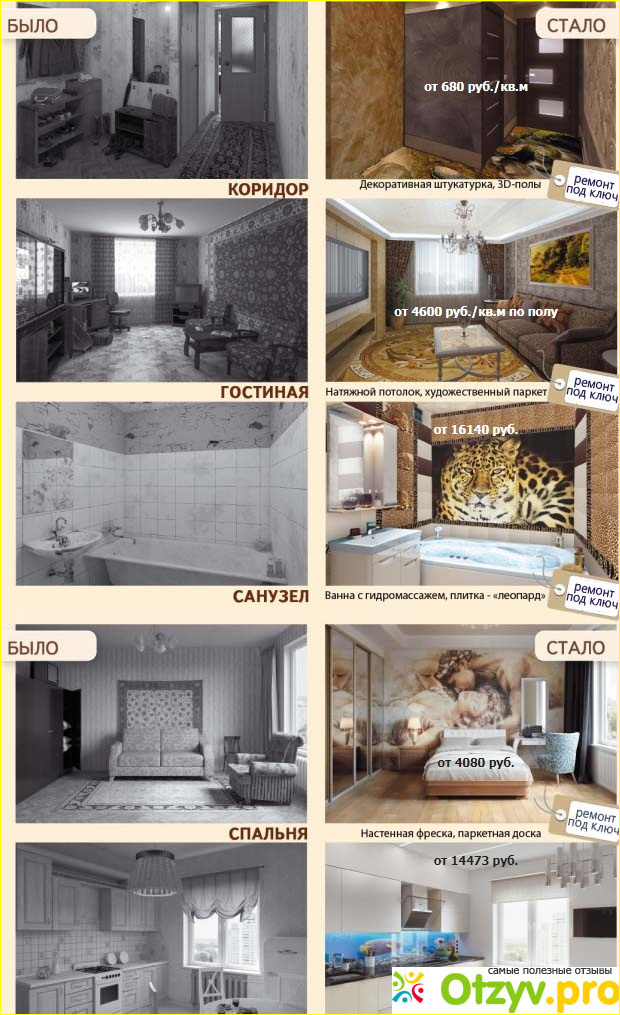 Разница между тем, что было и что стало просто огромная. Впечатление такое, что это разные квартиры.