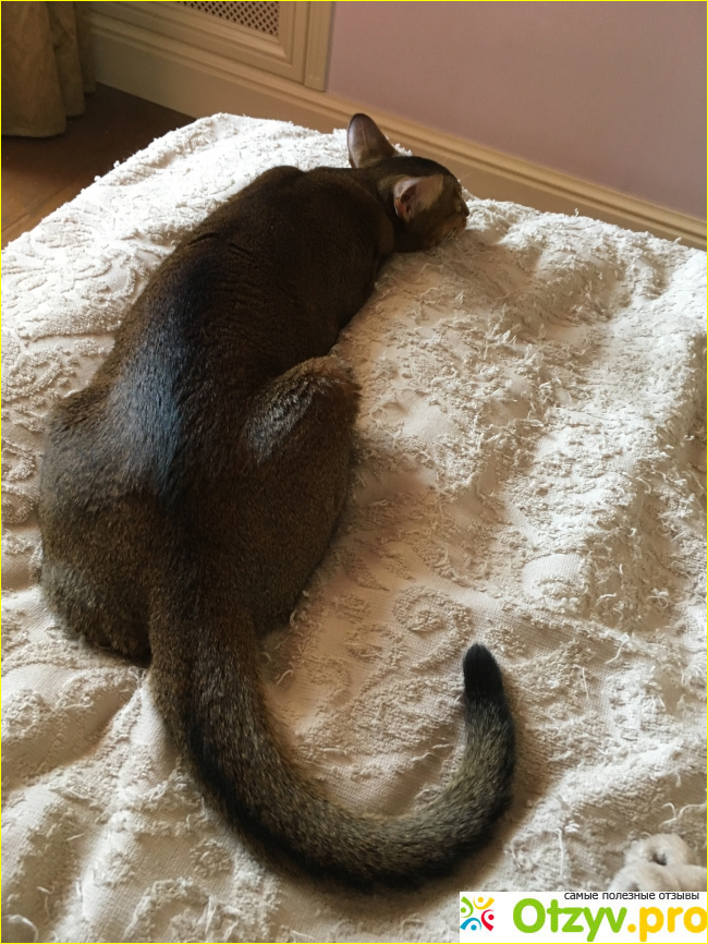 Хочу отметить, что порода очень теплолюбивая, зимой наш кот даже забирается на батарею и спит на ней ("спасибо" нашим коммунальным службам, еле топят, котик не обжигается). Часто кот забирается к нам в кровать, под одеяло.