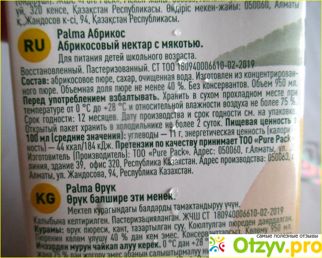 Производитель – известная торговая марка Palma Juice.