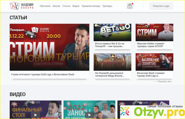 ру. Прошла бесплатные курсы и прочла много статьей на сайте, это мне помогло дойти до микролимитов и подняться выше. Недавно моя сестра захотела изучить покерный правила и я вспомнила про этот сайт, а сегодня решила оставить отзыв, чтобы новички знали, куда заходить и не тратили время впустую. Если подробнее, то на сайте можно найти полезные курсы, они могут быть платные и бесплатные, еще есть видео и статьи.