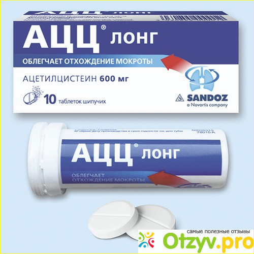 Данный препарат относится к группе муколитических, т. е. способствует выведению мокроты, разжижая ее и тем самым выводя из бронхов. Главное отличие АЦЦ Лонг от обычного АЦЦ - удобным способом приема, одноразовый прием таблетки в день. Можно принимать утром или лучше даже в обед, главное не на пустой желудок.