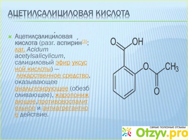 Она называется также -аспирин, откуда взялось это слово будет изложено ниже. А пока о способах применения . Люди привыкли пить это лекарство при простуде, и при любом повышении температуры. Одновременно это средство применяется для более серьезных недугов , таких как артрит, ревматизм и всевозможные проявления лихорадки . На самом деле, это чудодейственное средство нашло себя во множестве случаев: его применяют как противоволспалительное средство, лекарство для снятия болевого синдрома, для снижения температуры при различных видах лихорадки. Поскольку ацетилсалициновая кислота разжижает кровь, то ее прием в небольших дозах снижает риск сердечного приступа и инсульта. В некоторых странах широко практикуется прием аспирина для профилактики именно сердечных заболеваний, например в Соединенных Штатах Америки.