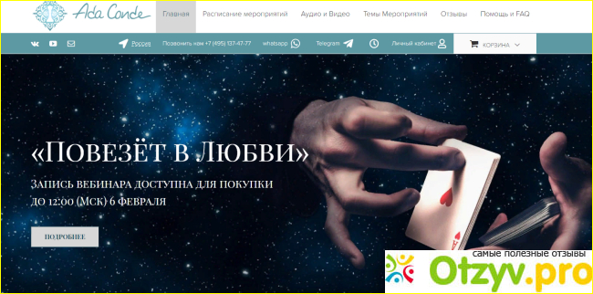 Ада Кондэ – известный консультант по личностному росту, которая помогает людям обрести уверенность в себе и радикально изменить свою жизнь к лучшему. Девушка регулярно проводит семинары, тренинги и личные встречи, и это довольно дорогое удовольствие. Мне очень нравятся ее вебинары и курсы. Видеоролики Кондэ призваны помочь женщинам в такие моменты: