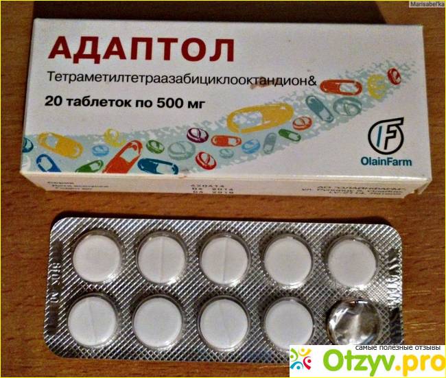 Выпускается Адаптол в виде таблеток по 500 мг. В упаковке бывает по 20 таблеток. Данный препарат довольно дорогой, одна такая упаковка стоит 700 рублей, но хватает ее всего лишь на 10 дней приема, так как мне доктор назначила принимать в сутки по две таблетки. Бывают ситуации, когда данный препарат назначают принимать по три таблетки в день, тогда упаковки хватит лишь на неделю. А принимать Адаптол нужно длительно, только тогда можно рассчитывать на стойкий успокоительный эффект. Мне его назначили на два месяца. У меня организм достаточно восприимчив к лечению, поэтому эффект я обычно ощущаю уже на второй день приема.
