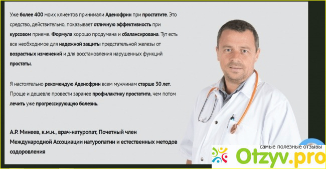 Имеется даже рекомендация специалиста, который сообщает, что уже более 400 пациентов пользовались аденофрином и получили заметное улучшение.