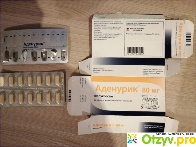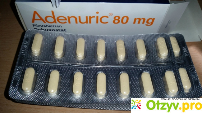 Аденурик отлично снижает уровень концентрации мочевой кислоты, эффективно воздействует на сму патологию, предотвращает появление более серьезных осложнений, типа подагры.