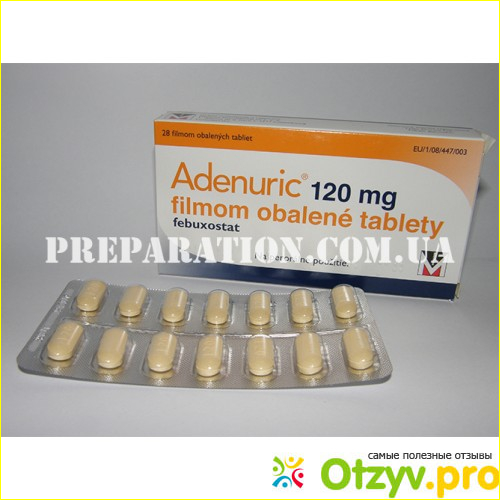 Препарат "Аденурик" используется для лечения подагры - нарушение вывода мочевой кислоты из организма, приводит к ее скапливанию в суставах, вызывая острую боль и покраснения.