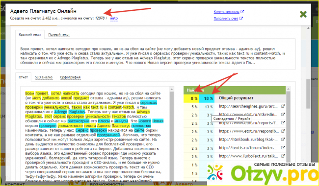 Не стоит забывать о том, что биржа advego существует и прекрасно работает на протяжении большого количества времени. Соответственно, администрация и разработчики смогли создать оптимальный вариант программы для проверки текста на плагиат.