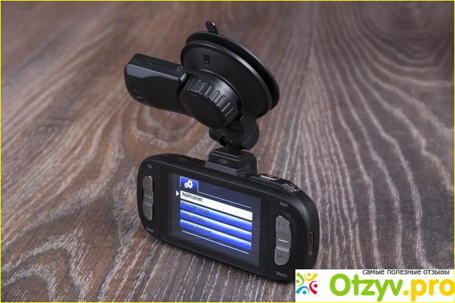 С другой стороны расположился дисплей диагональю 2,7 дюймов. Разрешение у него 640 * 360 пикселей. Экран может порадовать хорошим изображением и на нём с лёгкостью можно будет просматривать записанное видео. С двух сторон находятся две кнопки, они как бы сдвоены. В общей сложности на этом устройстве насчитывается шесть кнопок. Еще две одинарные кнопки расположились на верхнем торце. Управлять таким устройством очень просто и удобно. Чтобы включить или отключить какую-нибудь функцию нужно будет только нажать на клавишу. С легкостью можно будет остановить или начать запись. Включить или отключить подсветку, микрофон или экран. С правой стороны находится слот для карты памяти. В комплект этого устройства уже входит карта памяти объёмом 8 ГБ. С левой стороны расположился вход HDMI или кнопка сброса, которая находятся в углублении корпуса. Сверху находится выход, мини usb порт и площадка для крепления устройства. Очень удобно, что кабель питания подключается не к самому видео регистратору, а к кронштейну крепления. Таким образом мы в любой момент можем снять видео регистратор и вам не придется отсоединять провод. Это намного удобнее и занимает минимум времени. Крепление представленное из двух частей состоит. Это присоска и контактная площадка, которая соединяется с шарниром. Несмотря на то, что шарнира пластиковая она хорошего качества. Даже если она постоянно используется все равно не разбалтывается.