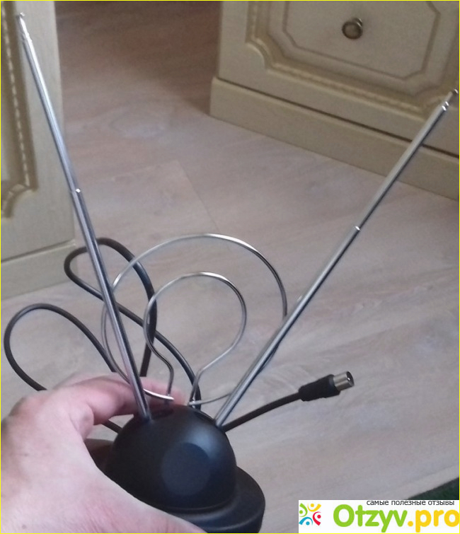 На самом деле эта антенна предназначена для просмотра обычного телевизора, который выпускался в конце 80-х или 90-х. У меня в свое время была аналогичная, в 95-ом году, показывала два канала Россия и Первый. На тот момент это было шикарно, но технический прогресс шёл вперёд и теперь двумя каналами уже не обойтись.
