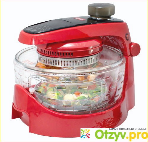 Хорошая модель аэрогриля является своеобразным сочетанием нескольких бытовых приборов - гриля, духовки пароварки, а также сушилки где можно высушивать овощи и зелень. Приготовление продуктов происходит таким образом, что квартира не прованивается дымом и паром, а на плите не остаются неприятные жирные пятна.
