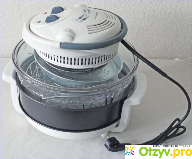 В приборе используется галогеновый нагревательный элемент. В наборе к прибору есть еще две металлические решетки. Одна из них идет высотой 20, а другая 40 см. Прибор отлично справляется со своей задачей. А чтобы с его настройками быстрее разобраться к нему прилагается инструкция по использованию. Помимо этого в наборе есть книжка с рецептами.
