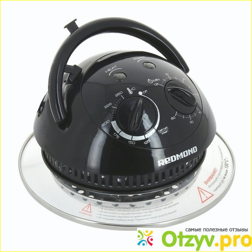 Я, как уже говорила, покупала не самый дорогой аэрогриль, но комплектация, на мой взгляд, очень хорошая. По виду аэрогриль напоминает крышку как будто, с ручкой наверху (я сперва не поняла что за ручка, оказывается просто это для того чтобы таскать прибор). Помимо самого аэрогриля в комплекте идут: 2 решеточки, инструкция, книга рецептов еще была (я правда по ней не готовила ничего, всегда в инете искала).