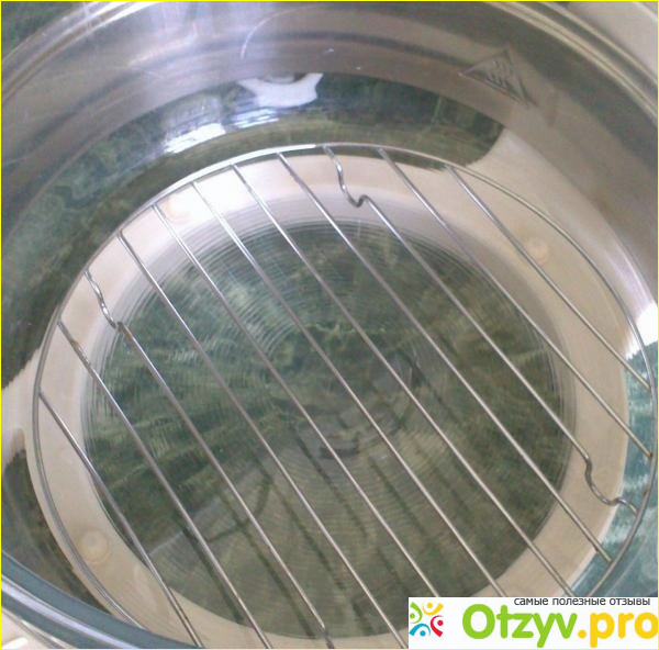 Аэрогриль состоит из основания - пластикового обода, из верхней части - крышки на кронштейне и из стеклянной чаши, в которой, собственно, и готовятся продукты.