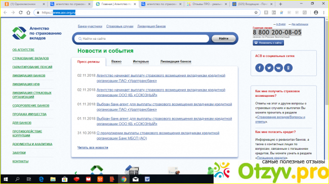 У такой солидной организации в наш век Интернета не моет не быть собственного официального сайта. И он есть, причем очень функциональный, информативный и с интуитивно-понятным интерфейсом. Здесь можно получить ответы на огромное количество самых разных вопросов, в том числе и о порядке действий, в случае наступления страхового случая, о том, когда стартуют выплаты вкладчикам того или иного финансового учреждения, какие банки-агенты уполномочены принимать заявления физических лиц и многое другое.