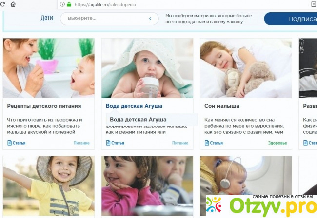 Еще мне нравится на "Агулайф" раздел "Энциклопедия". Там собрано много различной полезной информации, связанной с воспитанием детей. Причем радует, что статьи посвящены не только прикорму и еде малышей. Здесь вы можете узнать с какого возраста лучше начать путешествовать с ребенком в самолете, ознакомиться с системой работы Марии Мантессори, прочесть информацию о том какие есть особенности поездок с ребенком в машине. Есть немало материалов, посвященных развитию малыша в тот или иной возрастной период. Статьи не огромные, написаны достаточно простым и понятным языком.