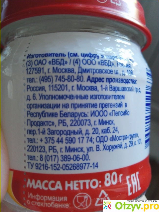 Баночка массой 80 грамм, опять же оговорюсь, в фирме бабушкино лукошко баночки по 100 грамм. Плюсом в баночке я считаю то, что есть вот такой измеритель, точно знаешь где эти 50 грамм , удобнее конечно было бы, если и сама баночка 100 граммовая была, как раз бы по 50 грамм на обед ребенку.