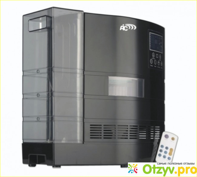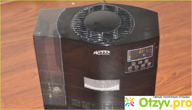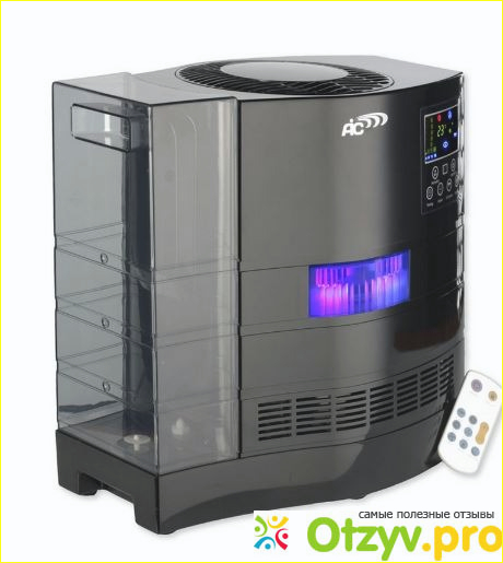 Самим производителем гарантируется очищение воздуха более чем на 90 % от наиболее распространённых загрязнений, таких как - бытовая пыль, пыльца растений, шерсть домашних животных, сигаретный дым и выхлопные газы. Когда данный аппарат работает в его прозрачном = окошке для контроля, загорается светодиодная подсветка. Каждая функция мойки регулируется сенсорными кнопками, вы можете выбирать автоматическую поддержку уровней влажности или устанавливать параметры вентиляции и увлажнения с тремя уровнями мощности сами. И отдельно вы можете включить обработку ультрафиолетом и ионизацией. Переходя в ночной режим дисплей может затемняться, а уровень шума заметно понизится. Имеется так же таймер до девяти часов и возможность блокировки. В комплекте к аппарату прилагаются пульт дистанционного управление и инструкция. Сам прозрачный бачок для воды, имеет объём восемь литров и располагается сбоку, так что его очень удобно наполнять водой (желательно кипячёной, фильтрованной или в идеале дистиллированной). Когда же не хватает воды для работы прибора, то включается подача звукового сигнала. Модель не имеет сменных расходников и это очень и очень удобно, так что фильтры постоянно менять не нужно, но все части моющей системы рекомендуется обязательно , каждую неделю промывать проточной водой.