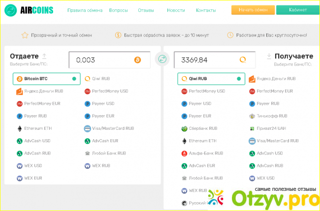 Здравствуйте, этот отзыв будет снова на мою любимую тему, которая относится к разделу мошенничество в интернете, я хочу поделиться с вами еще одной информацией о мошенниках в сети и о одном сайте, который я считаю просто наглым, потому что глядя в глаза тебе говорят о том, что тебя обманули и сейчас я расскажу о том, как работает данный сайт обменник, который является не законным лохотроном в сети, сайт называется Aircoins.pro, и если вам этот сайт предлагает шикарные условия, то не в коем случае не верьте ему, потому что вас нагло обманут и потратят свои деньги на себя, а вы останетесь с носом.
