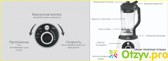 И нашел этот корейский блендер по цене, которая вполне устраивает и с функцией вакуумизации пищи. Объясню, что это такое. Это способность блендера убирать воздух из пищи. Что это дает: Продукты не подвергаются окислительному процессу, даже яблоки не темнеют. Если нужно есть сразу, ешь, если хранить, с запасом, то перекладываешь пюре в специальные упаковочные контейнеры, откачиваешь из них воздух и так хранишь. Для этого в комплекте есть контейнер емкостью 1 л, бутылочка на 0,5 л и два полиэтиленовых пакета разного размера. Даже без холодильника пюре хранится до суток. Содержимое чаши не окисляется, получается однородное, без пузырьков воздуха и разных вкраплений. Мощность блендера 2000 ВТ, три режима работы - сок, смузи и с пониженным уровнем шума на половинной мощности. Режим сок наиболее мощный, перемалывает мелкие косточки. Объем чащи - 1, 5 л., материал чаши - тритан.