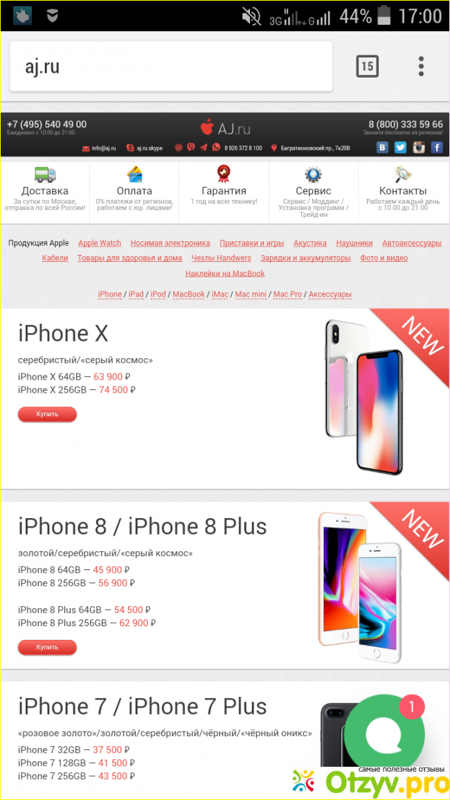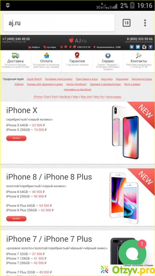 Смотрела все возможную информацию, но в интернете так легко нарваться на не добросовестных продавцов. Вот и задумалась где же купить оригинал и немного подешевле. Про этот сайт очень много положительного и отрицательного много. Отрицательность какая-то вялая. Порадовало что aj.ru большой выбор товара. Да и гарантия лишней в таких делах не будет. Купить у них можно носимую электронику, приставки и игры, акустику, наушники, автоаксессуары, кабели, товары для дома, здоровья, чехлы Handwers, зарядки, аккумуляторы, наклейки на Macbook, Ipad, ipod, iphone, Mac mini, imac, Mac Pro и тд. А внизу сайта есть телефончик по которому можно позвонить и выпросить небольшую скидку.