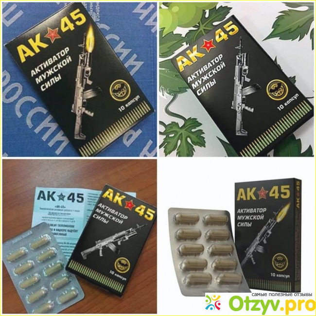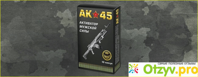 Название АК-45 произошло не спроста, АК-45 это автомат Калашникова, он всем известен своей убойно силой, выдержкой и пример для подражания многим другим автоматам, именно поэтому одноименное название взяли таблетки. Они помогают мужчине вновь вернуть силы и в сравнении с другими мужчинами, принимавший таблетки АК-45 будет пример для подражания :).