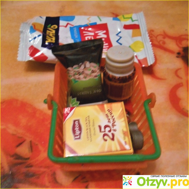Мне сегодня досталась картонная пачка чая размером с бульонный кубик. Внутри, естественно, пусто. Вещица это совершенно для меня ненужная. Маленьких детей, которым было бы интересно играть в магазин, в моей семье нет. Предлагала Мини-Ленту знакомым, у которых есть дети соответствующего возраста, но они отказались. У всех были свои причины - дети не играют в подобные игры, своего хлама хватает итд.