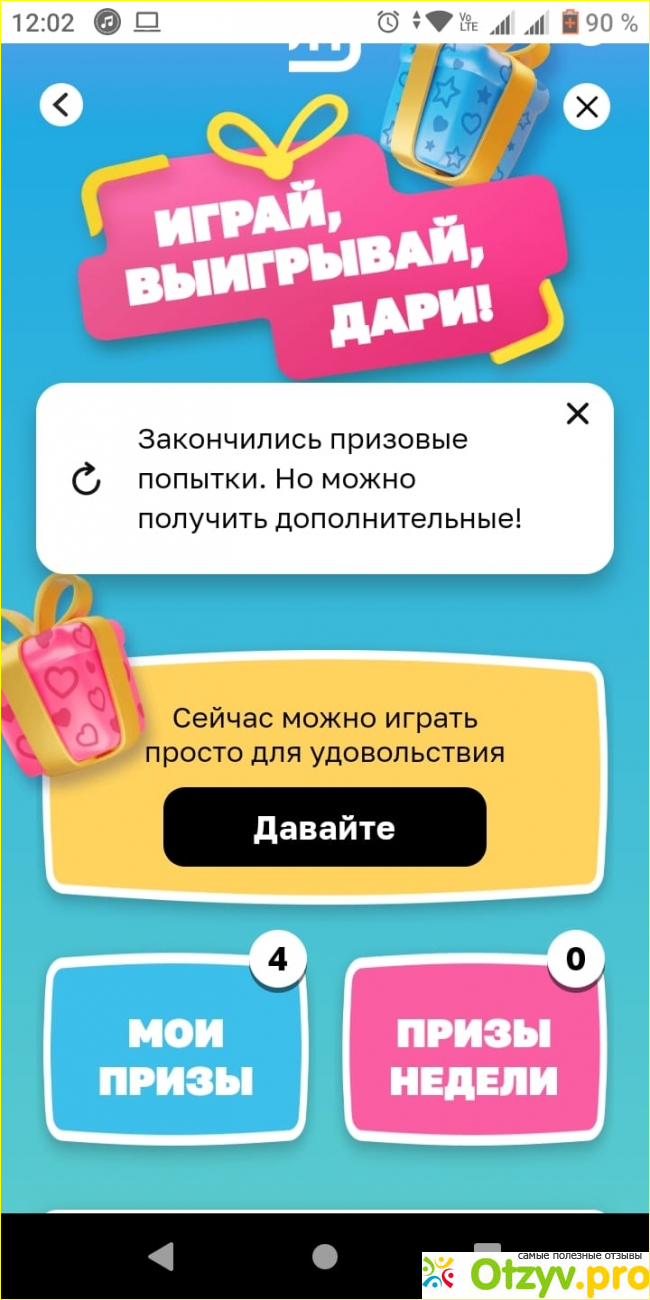 Кто не любит подарки и призы? Все знакомые скачали приложение и последние дни усердно пытаются выиграть. Одна попытка дает в день просто так, остальные за потраченные в сети деньги. За 500-1000 рублей, смотря где отовариваетесь вам дарят попытки.