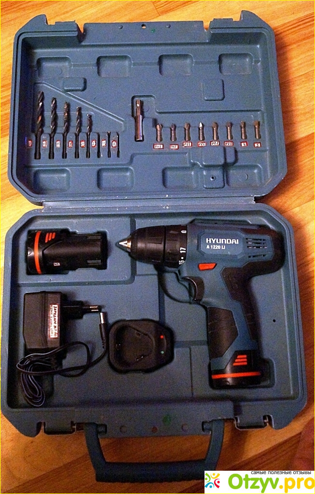 После недолгого поиска наличия такого инструмента в наших магазинах, выбор я остановил на аккумуляторном шуруповерте Hyundai A1220Li. Естественно, вы спросите : Почему? И я с удовольствием отвечу на этот вопрос. Аккумуляторный шуруповерт Hyundai A1220Li, на мой взгляд – это шуруповерт нового поколения. Во-первых, он небольшого размера, весит немного меньше одного килограмма, изготовлен добротно и качественно, да и сам по себе симпатичный. Благодаря его размерам и удобной ручке, он очень удобно лежит в вашей руке, что делает работу с ним удобной и комфортной. Во-вторых, он аккумуляторный и это тоже создаёт определенные комфортные условия, он не зависит от электрической сети 220 вольт, не надо рядом иметь розетку в 220 вольт, да и подлезть таким шуруповертом можно куда угодно. Да, с аккумуляторным шуруповертом есть свои проблемы, ведь аккумуляторная батарея не может служить вечно и в противном случае работа с ним может приостановиться. Но на этот случай в комплекте к данному шуруповерту приложена вторая аккумуляторная батарея, которая позволяет работать данным шуруповертом практически без остановок. А наличие аккумуляторной батареи типа Li-ion, в отличии от других типов аккумуляторов, позволяет заряжать её вне зависимости от уровня её заряда. Это обеспечивается тем, что у данной аккумуляторной батареи нет эффекта памяти.