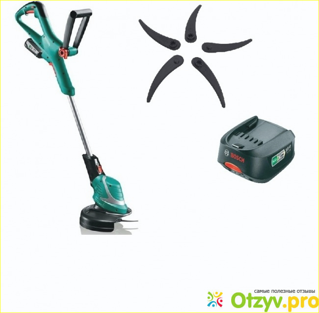 Вместо лески или дискового ножа в этом устройстве используется маленький пластиковый нож. Стирается он быстро по мере работы. Чем больше стирается, тем сильнее триммер начинает вибрировать. В комплекте ножей только два, поэтому нужно будет покупать отдельно. Кстати, видео в интернете демонстрирует как замечательно ликвидируется выскочившая из из щелей между плиткой трава . У меня не получилось этим триммером пробившиеся через старый асфальт сорняки скосить. Я сразу портила нож. Для него нежелательно натыкаться на пни, камни и другие твердые предметы.