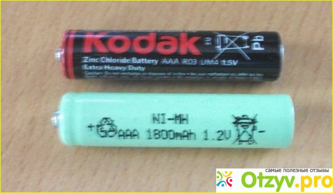 Никель - металлогидридный аккумулятор, (снизу) и солевая батарейка