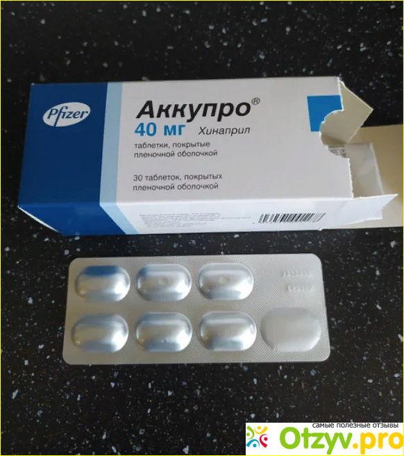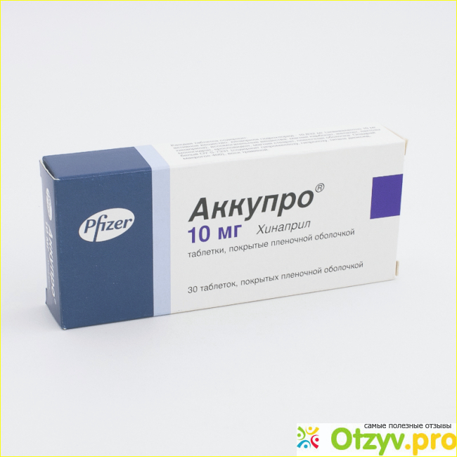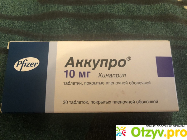 Препарат Аккупро– это герой моего обзора, препарат относится к категории ингибиторов ангиотензин превращающего фермента (ингибитор АПФ). Действующим веществом является хинаприл в дозах 5 мг, 10 мг, 20 мг, 40 мг; выпускается в форме таблеток. Вещество хинаприл действует путем блокирования ферментов, который приводит к высокому кровяному давлению и сердечной дисфункции. Препарат повышает толерантность сердца к физическим и психоэмоциональным перегрузкам, уменьшает закупорку легочной артерии, уменьшает постэмоциональную нагрузку, влияет на артериальное давление, улучшает кровоток в ишемизированной области миокарда сердца, увеличивает коронарный кровоток, снижает агрегацию тромбоцитов (т. е. риск тромбоза). После приема лекарства терапевтический эффект развивается в течение часа после еды. Полный положительный результат в динамике лечения виден уже через несколько недель после начала лечения.