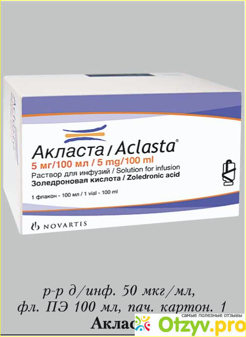 Активным ингредиентом Акласты является золедроновая кислота, которая принадлежит к группе лекарств, называемых бисфосфонатами. Акласта используется для лечения остеопороза у женщин в постменопаузе и у мужчин, для предотвращения дополнительных переломов у мужчин или женщин, недавно перенесших перелом бедра, или для лечения или профилактики остеопороза у мужчин и женщин, вызванного лечением стероидными препаратами, такими как преднизолон. Акласта также используется для лечения костной болезни Педжета.