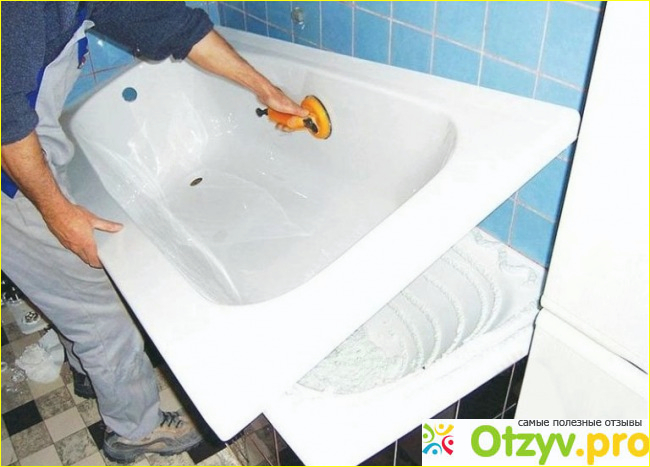 В сравнении с жидким наливным акрилом, исходная цена, разумеется, выходит более высокая. Зато преимуществ у такой беленькой красотки поболее будет – не нужно ждать полнейшего высыхания, чтобы полноценно купаться, не нужно бояться, что краситель наливки пойдет, что называется «пузырями». И такое случается при недостаточной затирке застарелых загрязнений. Для «акрильщика» намного быстрее поставить новый вкладыш, который спрячет любые дефекты старенькой поверхности.