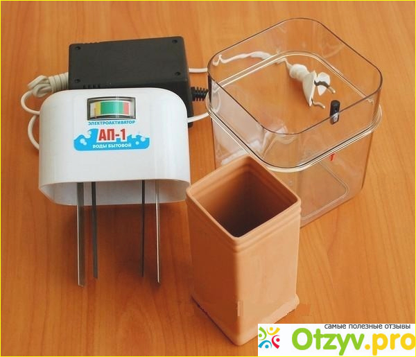 Электроактиватор воды Ап-1 производится в Беларуссии. Устройство у него простое, вид довольно топорный.