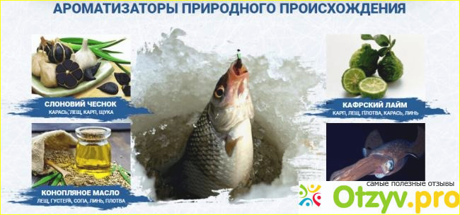 В составе имеется гигантский чеснок. Он помогает поймать такую рыбу, как щуку и леща. Не так часто они встречаются, но все же порой приносит домой и такую рыбку.