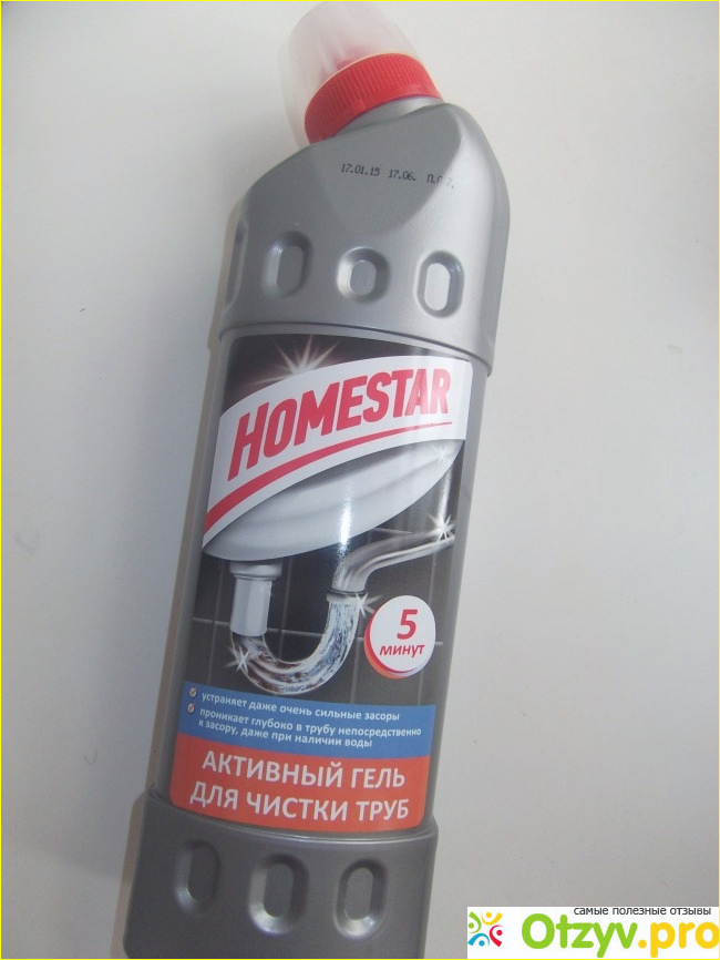 Упакован данный гель Homestar в пластиковую бутылку объемом 500 мл., которого хватает на два применения судя по описанию. Но я в раковину на кухне заливаю 250 мл., а остаток делю между ванной и раковиной в ванной комнате. В итоге раз в месяц я провожу профилактику засоров.