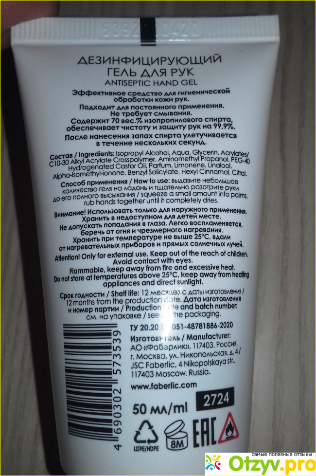 На обратной стороне можно прочитать состав и способ применения данного продукта. На сварочном шве обозначен срок годности геля.