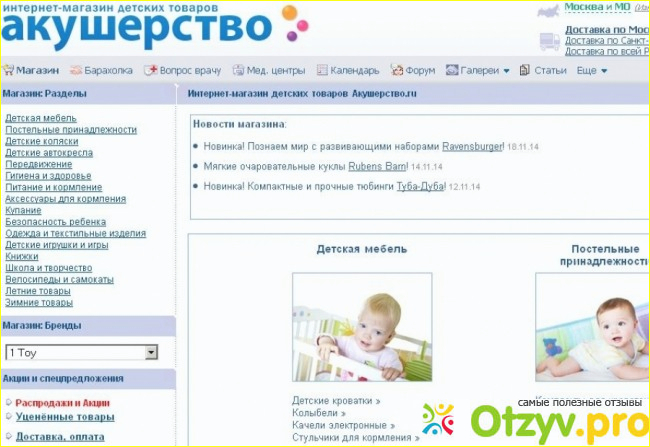 Зашла на сайт и была приятно удивлена ценами и огромным выбором товаров. Все с картинками и подробным описанием товара, очень удобны разделы, мебель, питание, гигиена и т. д. Раздел акции вообще порадовал, нашла кроватку которую присмотрела в обычном магазине намного дешевле.