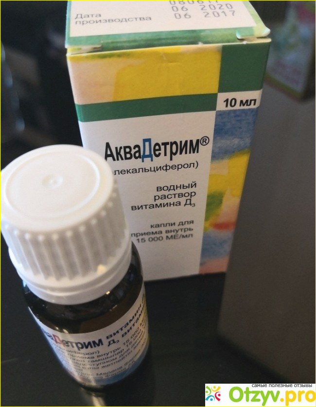 Единственный минус - сама бутылочка не очень удобная. Если в других лекарствах 1-2 капли капнуть легко, то аквадетрим либо не капает, либо как нальется сразу штук 5-7 капель. Долго я не могла с ней справиться. Но когда количество препарата уменьшается, капать уже легче.