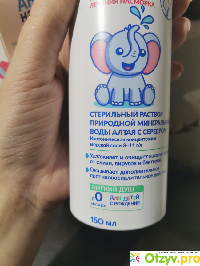 Акваназаль отлично справляется со своей задачей, деликатно орошает слизистую оболочку, мягко увлажняя ее, очищает от корочек. Удобная насадка, можно не переживать о травмировании маленького носика. Клапан работает нормально, усилия при нажатии не нужны. Расход экономичный, хватает надолго. Средство ничуть не уступает по качеству дорогостоящим аэрозолям, учитывая, что его стоимость в разы дешевле. Состав абсолютно натуральный, нет никаких вредных добавок и консервантов. Только минеральная алтайская вода и морская соль.