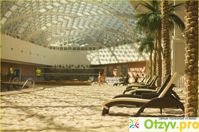 Минусы: там нечего делать, за полную стоимость уж точно. Для детей всего одна маленькая горка, даже нет бассейна с волной. Заявленная анимация по факту 5 минут игры в весёлые старты, все. Играть там на детской площадке невозможно, ребёнок мокрый, а там везде песок. Финская баня не работает. По факту, это просто бассейн. Ничего там нет интересного. Через купол ничего не видно, стекло грязное.