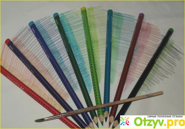 Внешне эти карандаши выглядят как обычные, но внутри имеют прессованную акварель, которая растворяется при соприкосновении с водой.