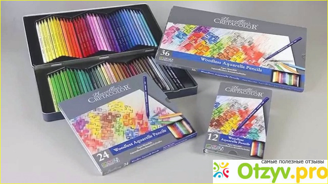 Такие карандаши имеют яркие цвета, разную комплектацию и не оставляют следов от штрихов, размываясь от воды на 100%
